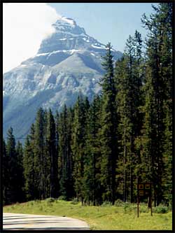 Mt. Assiniboine, the "Matterhorn of the Rockies", looms above the Bow Valley Parkway |