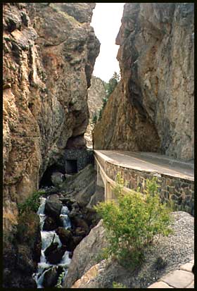 The highway cuts through a narrow gorge in the Sinclair Canyon at the bottom of the pass, directly after the Parks booths |