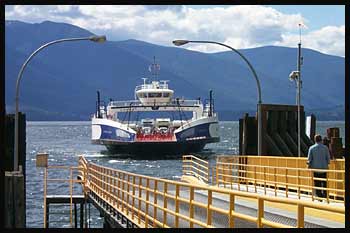 To set ourselves up for travelling over the pass in the early morning when it's much cooler, we had a short ride from Nelson north to the Balfour ferry that takes vehicles and passangers across Kootnay Lake. It's a very scenic 45 minute boat ride.