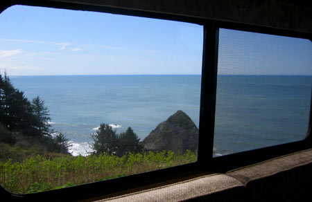 | From Garberville we made tracks south and took the insanely winding #1 to the coast. Our 22-foot rig seemed about the max length you'd want to safely take on that road (corners with recommended speedsof 10 mph!), but we passed not only 2 at least 40-foot RV's but a full on 18-wheeler as well!! We took in a full breath of relief as we broke out on the coast! | ||||||||||||||||