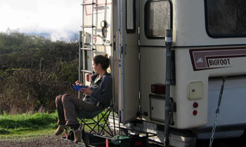 | After a night of heavy rain, we awoke to sunshine California-style! In to town we went to a laundromat to wash & dry the heap of soaked clothing, and for some groceries from Wildberries. Also picked up a detailed topographical atlas of Northern California which was quite a big help on our adventures. | ||||||||||||||||||||||||||||||||||||||||